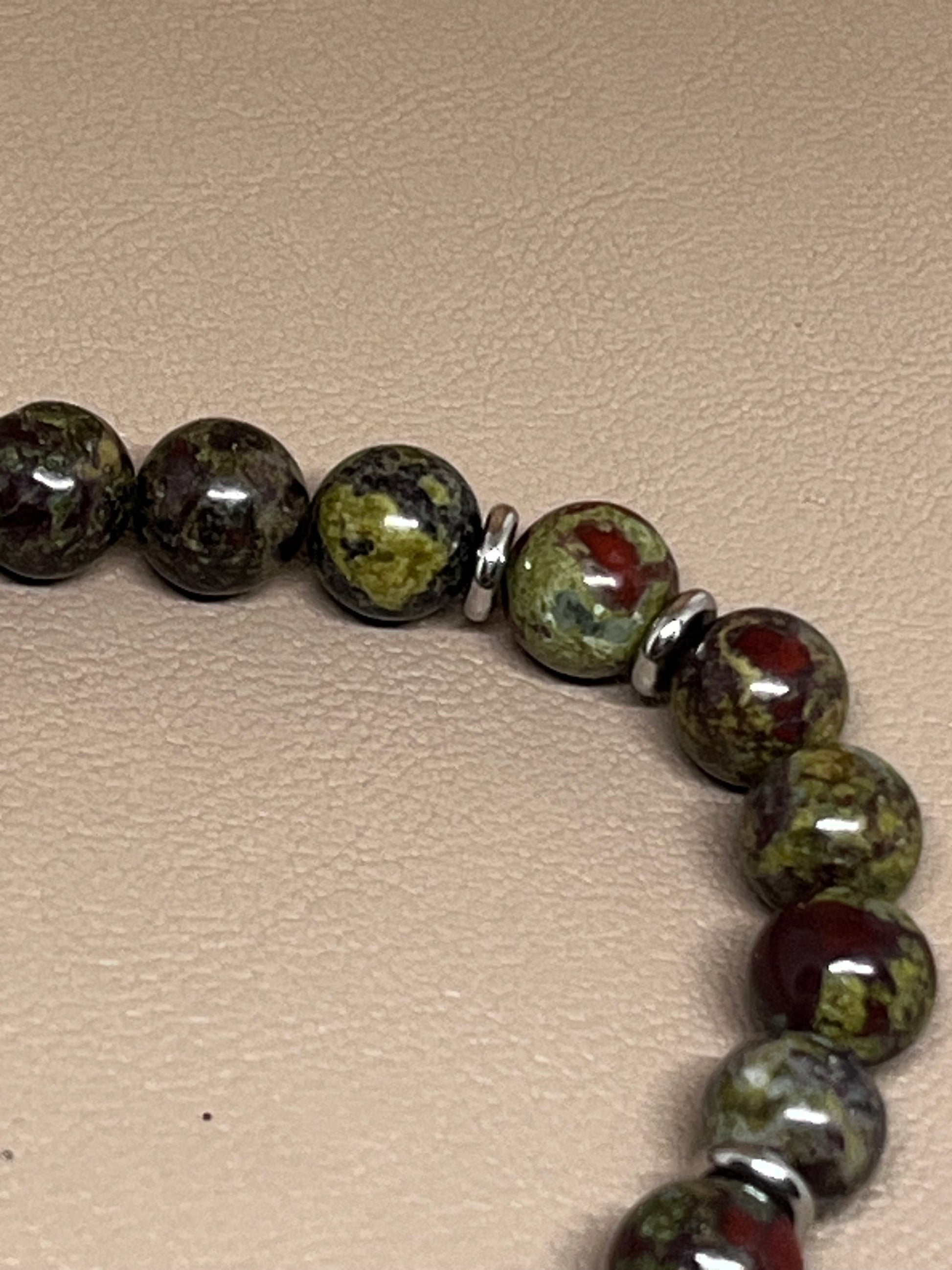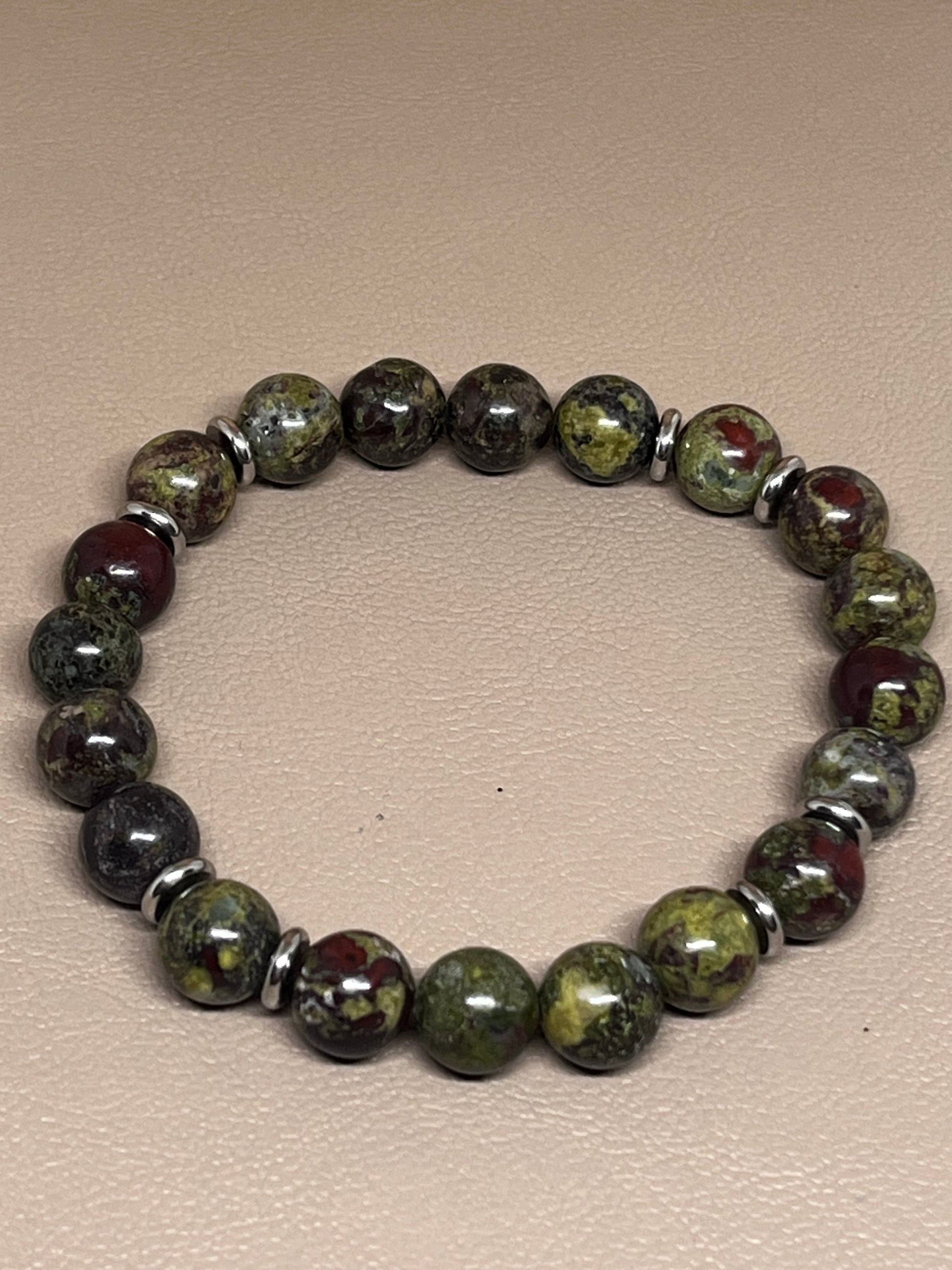 🎨 Farge / steintype: Drageblodsteinperler 8mm og rustfritt sølvfarget stål.