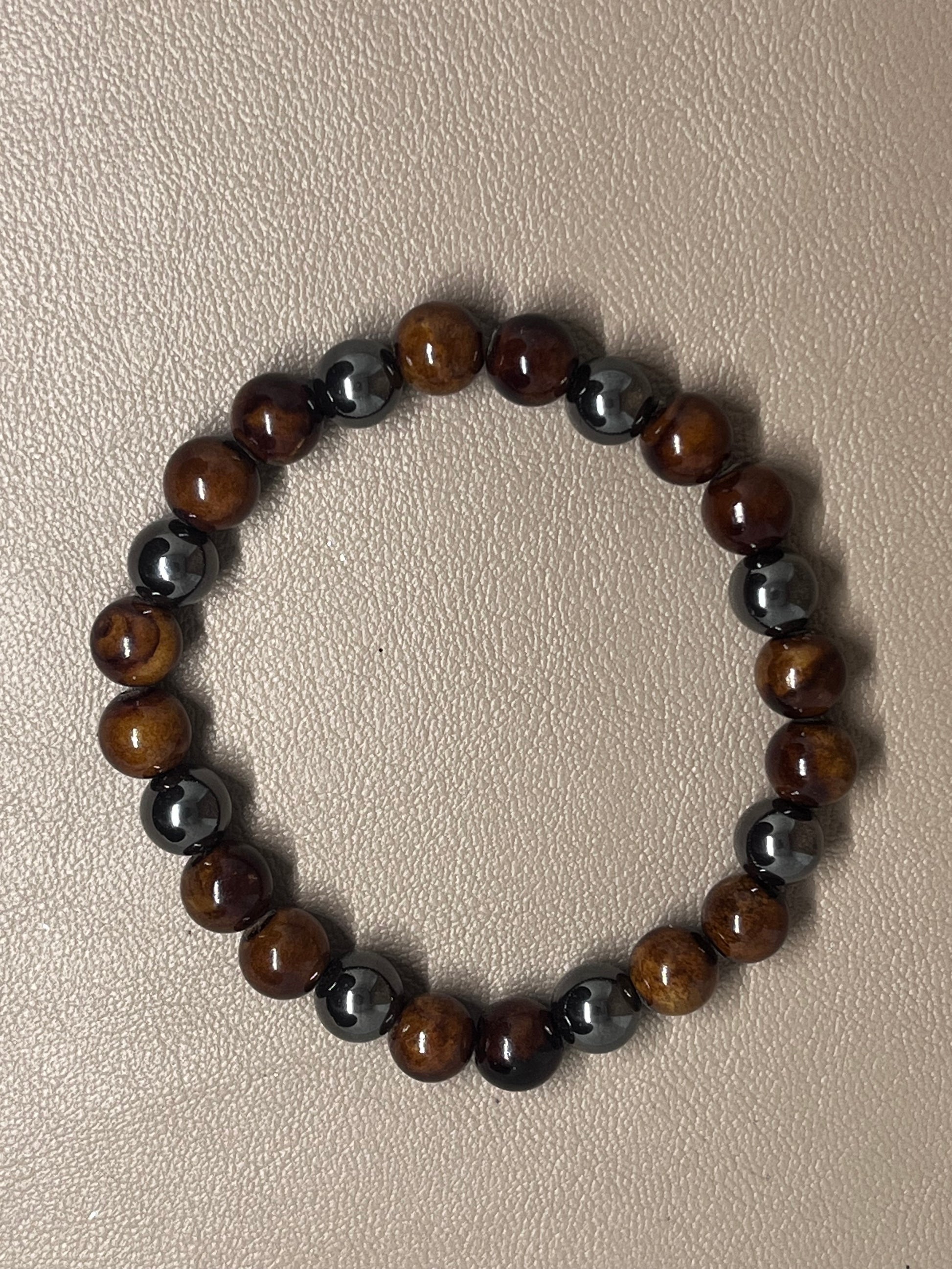 🎨 Farge / steintype: Brun calsedon perler og sort hematitt. 8mm.