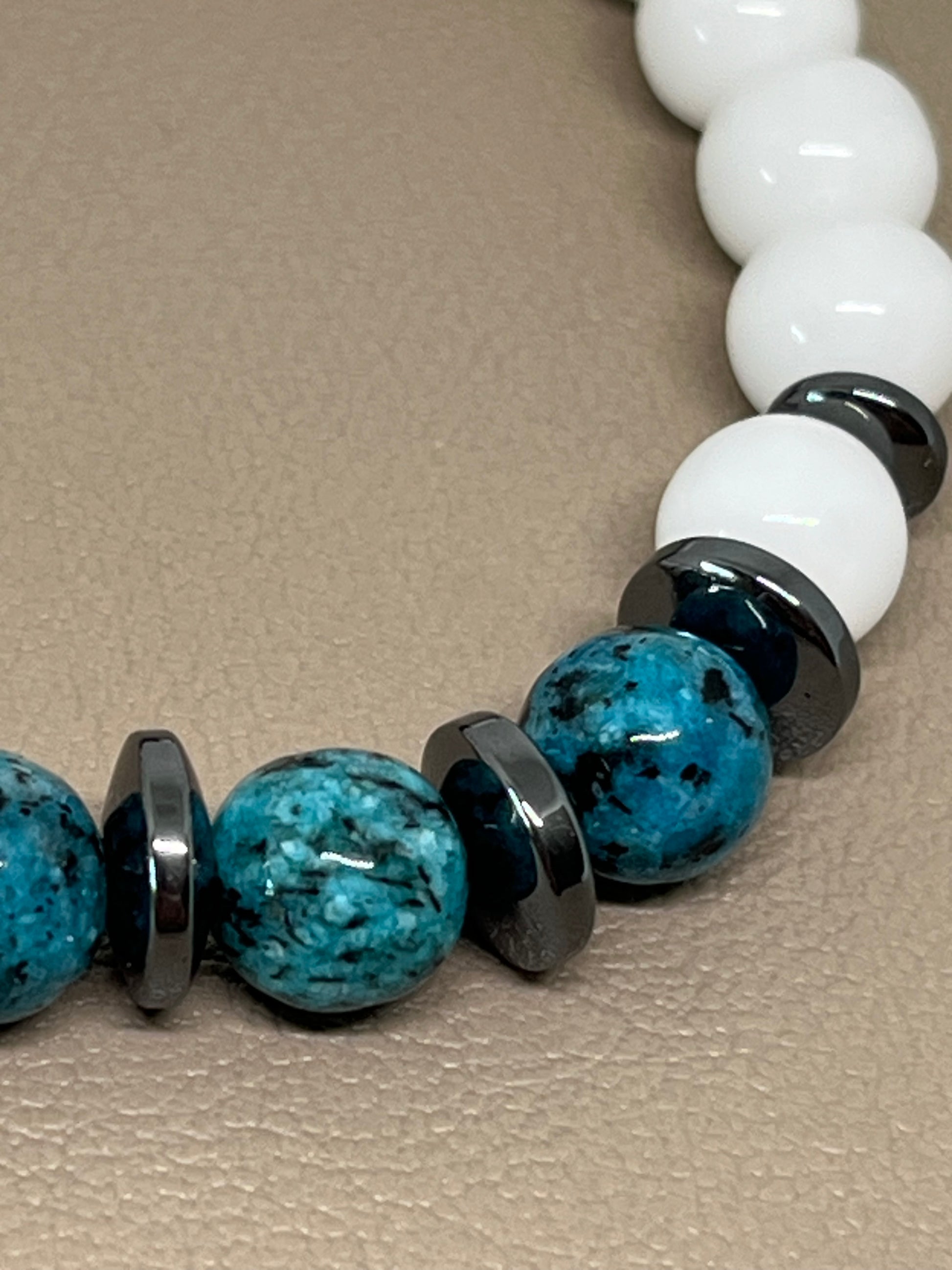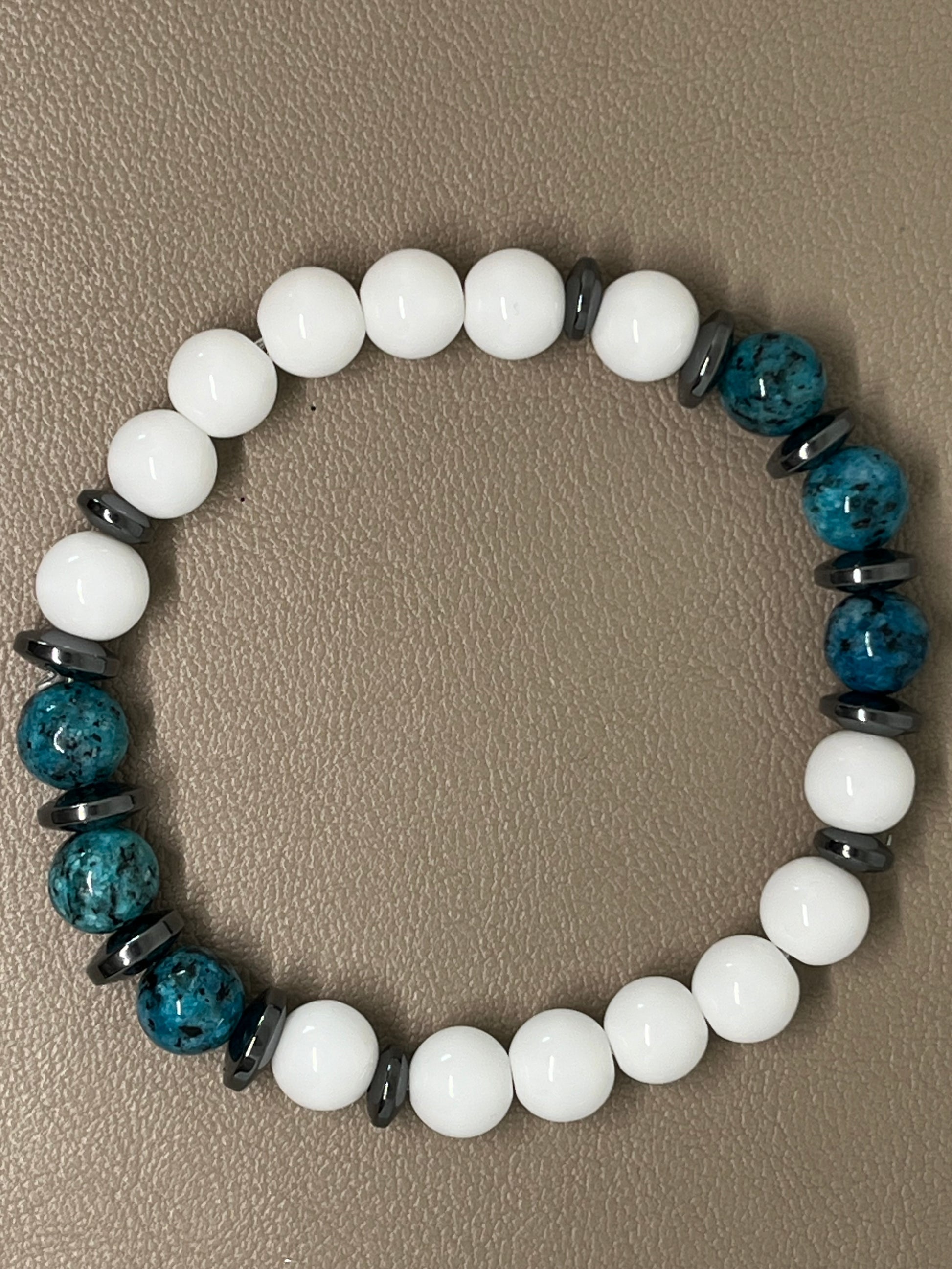 Armbånd Hvit agat, blå Jasper med sort hematitt
