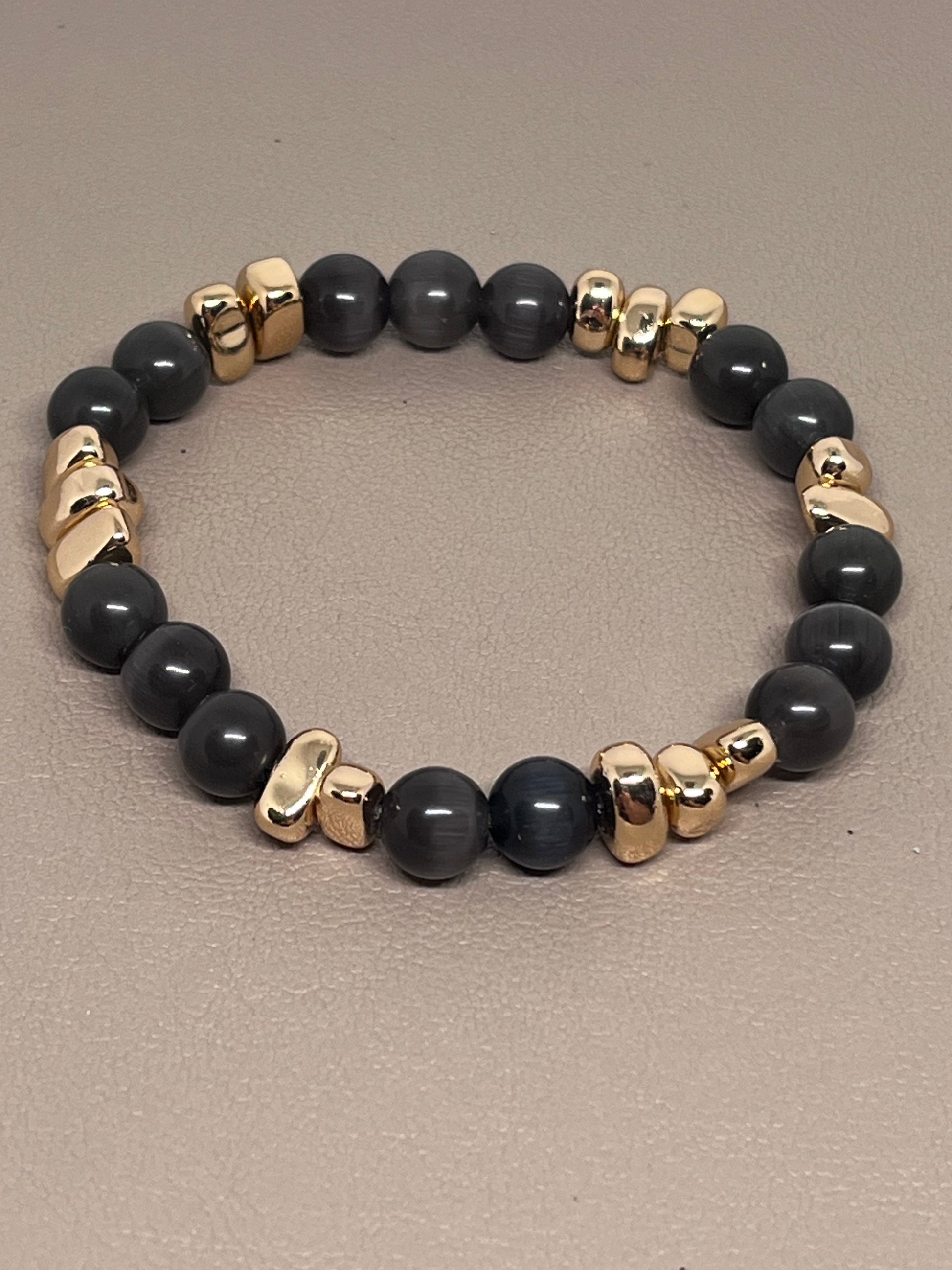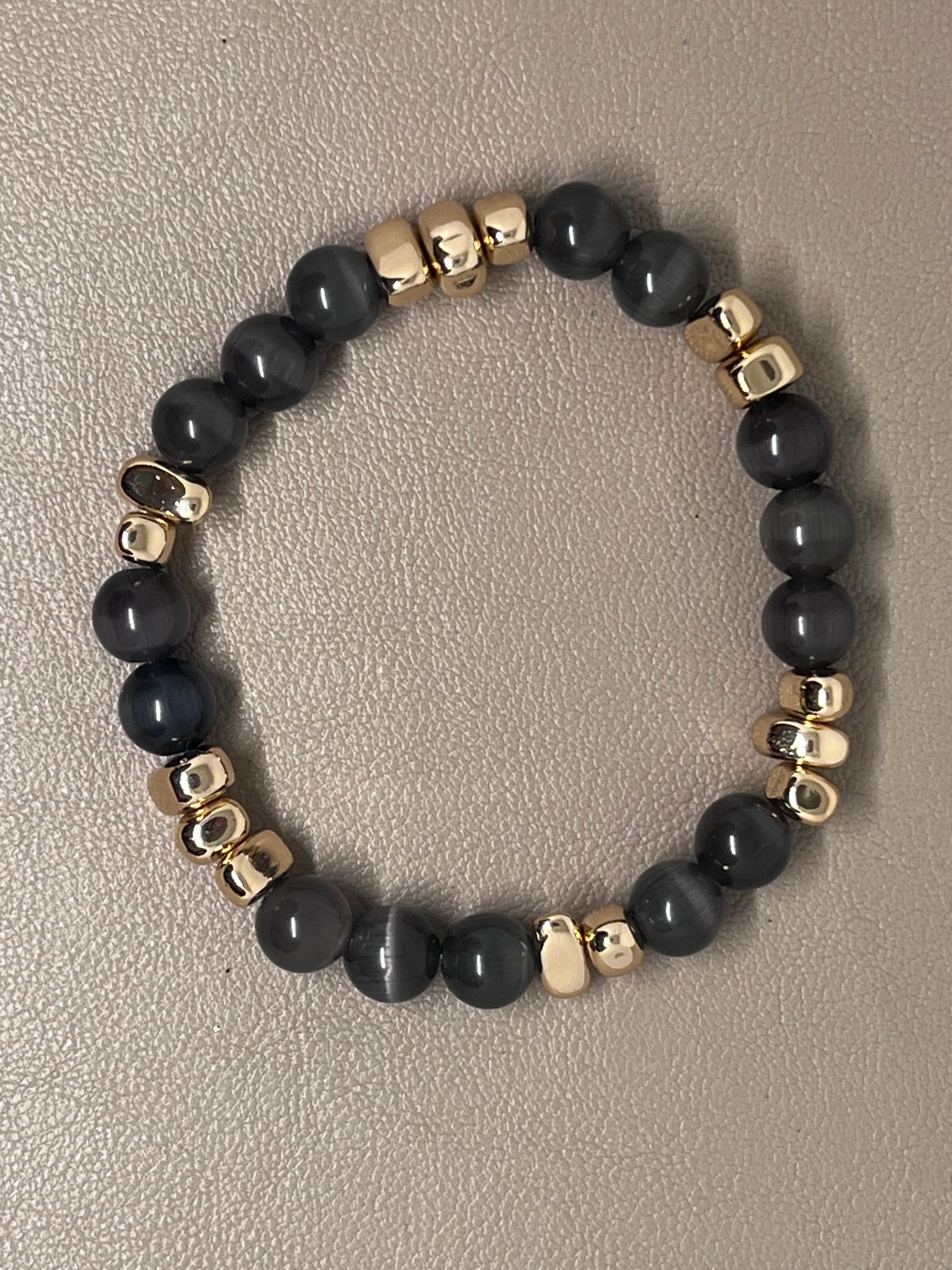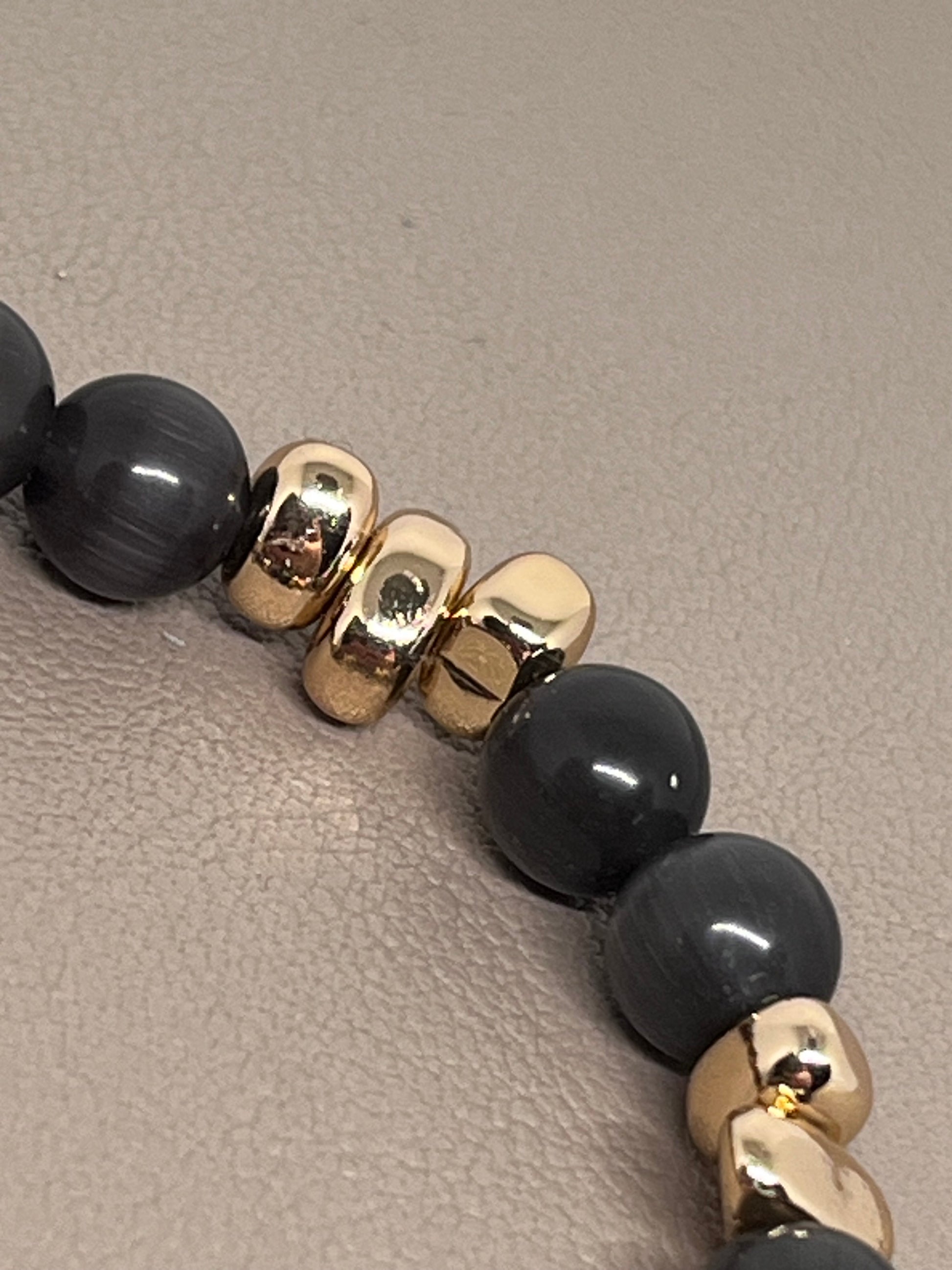 🎨 Farge / steintype: Grå tigerøyne og gullfarget gullfarget hematitt. 8mm.