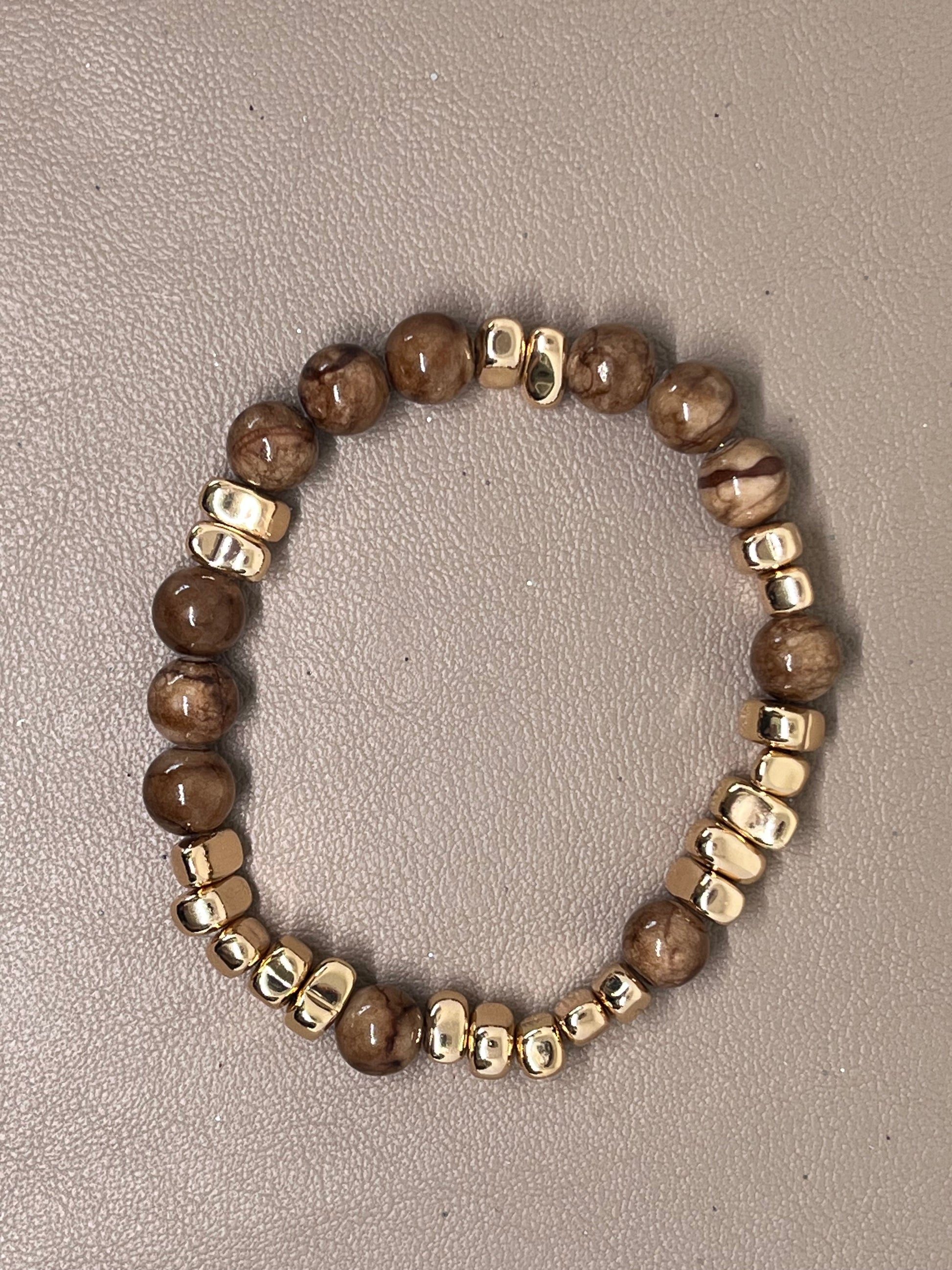 🎨 Farge / steintype: brun kalsedon 8mm og gullfarget hematitt
