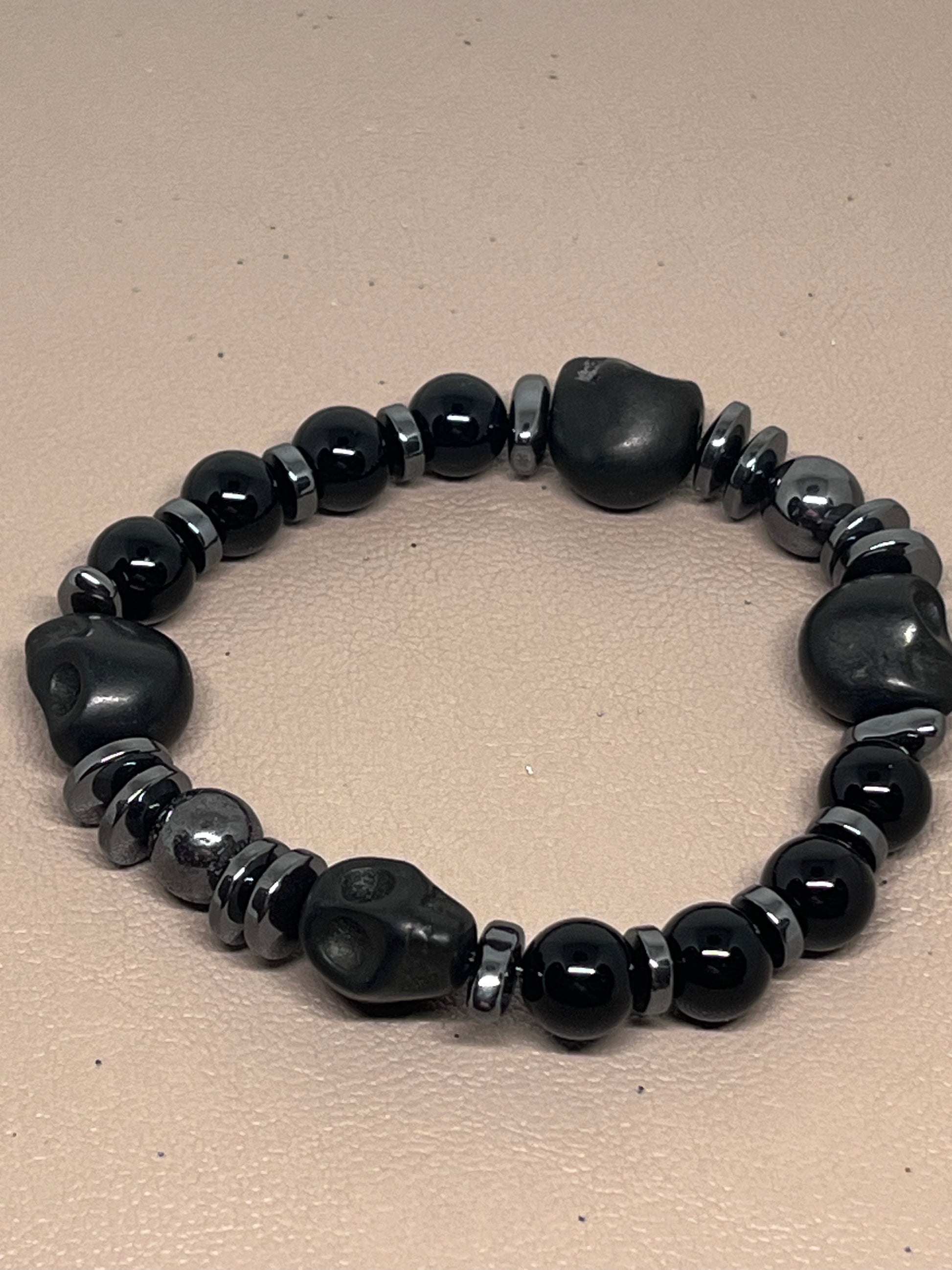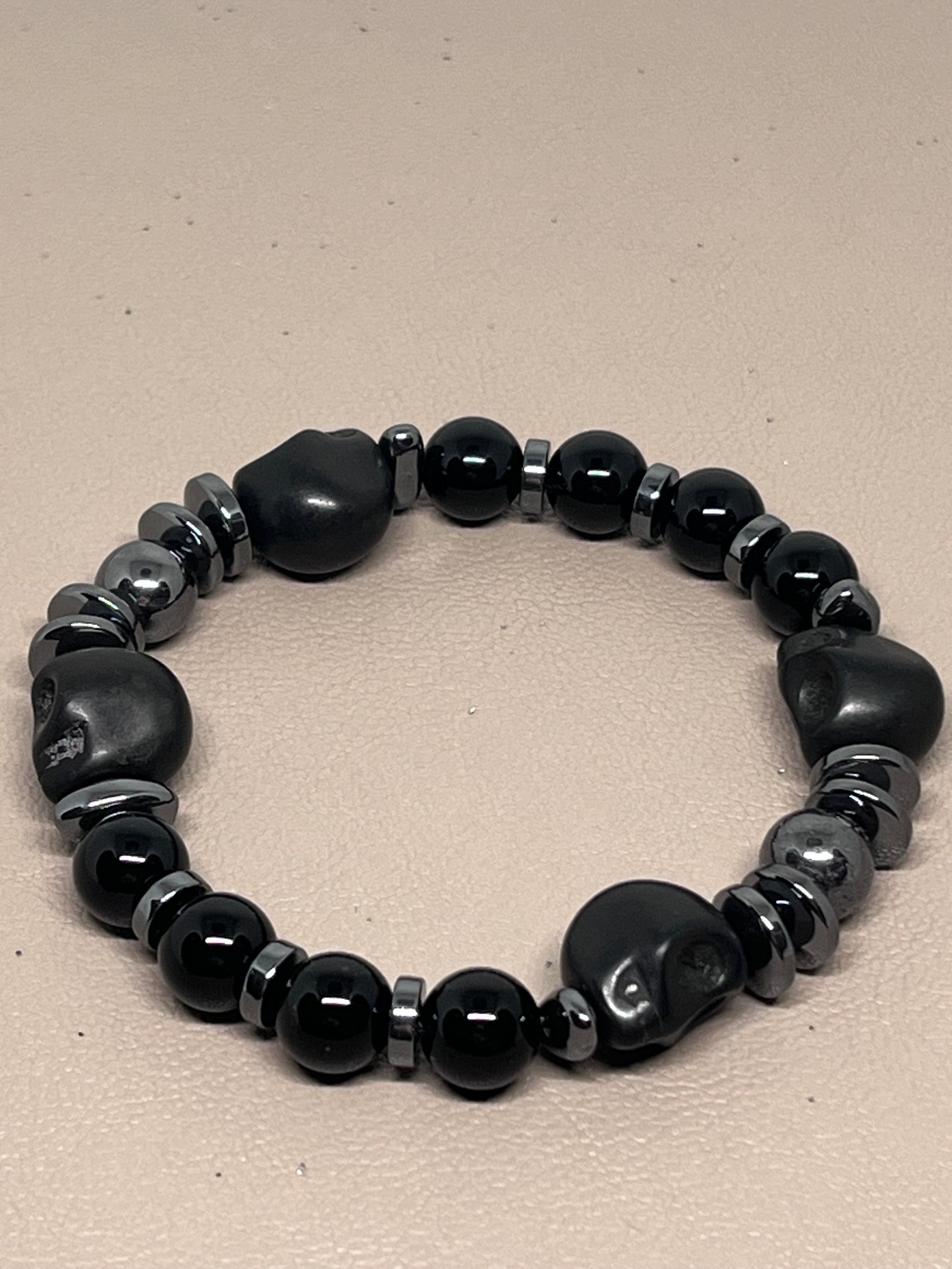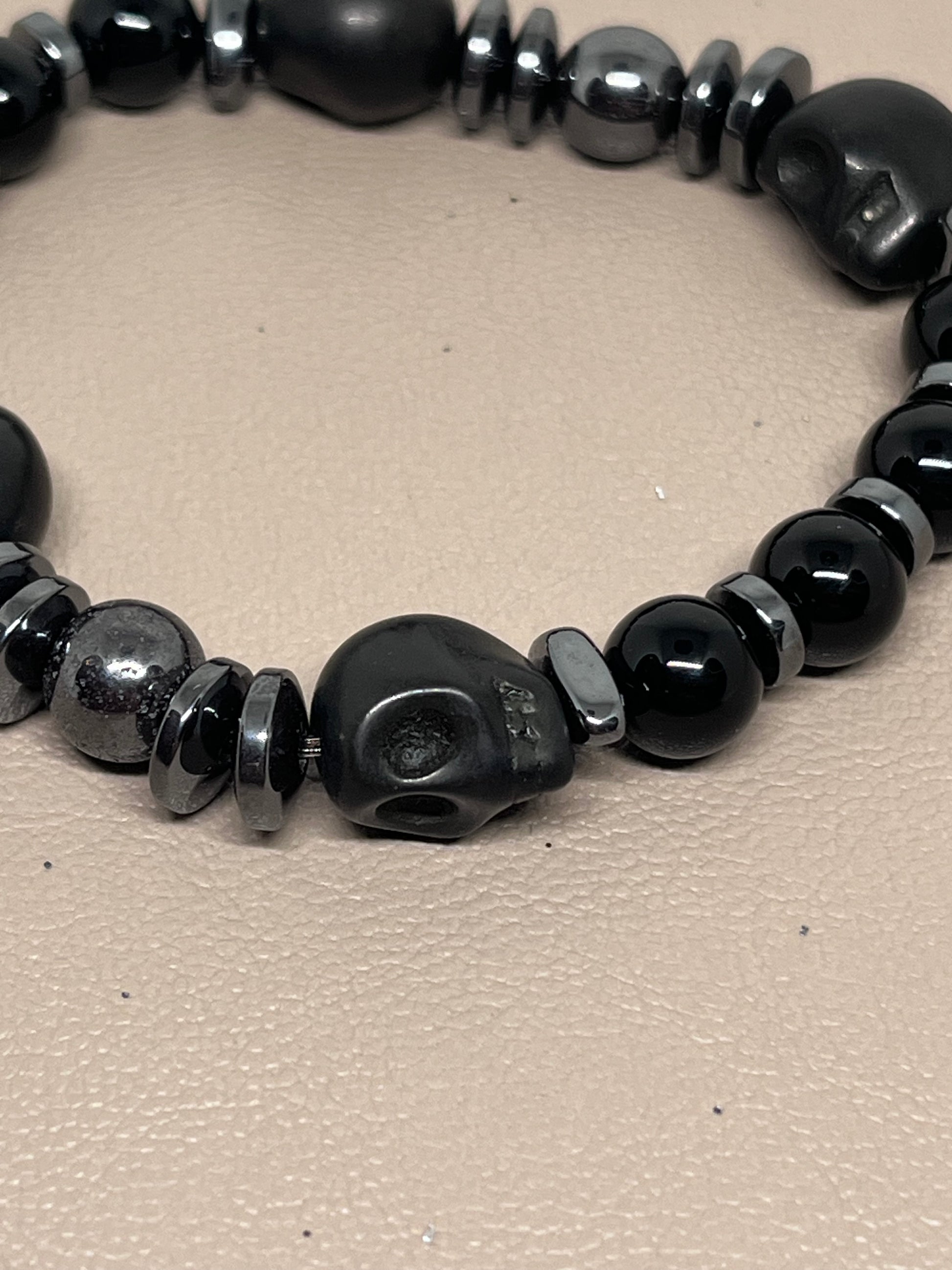 🎨 Farge / steintype: Hodeskaller i sort howlitt, sorte onyxperler 8mm og sort hematitt.