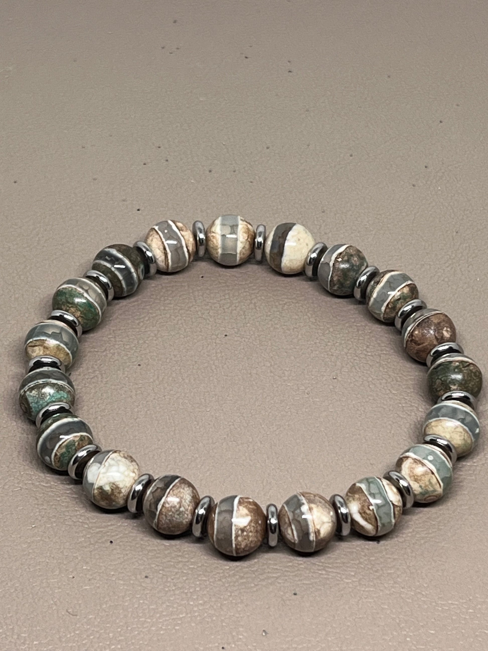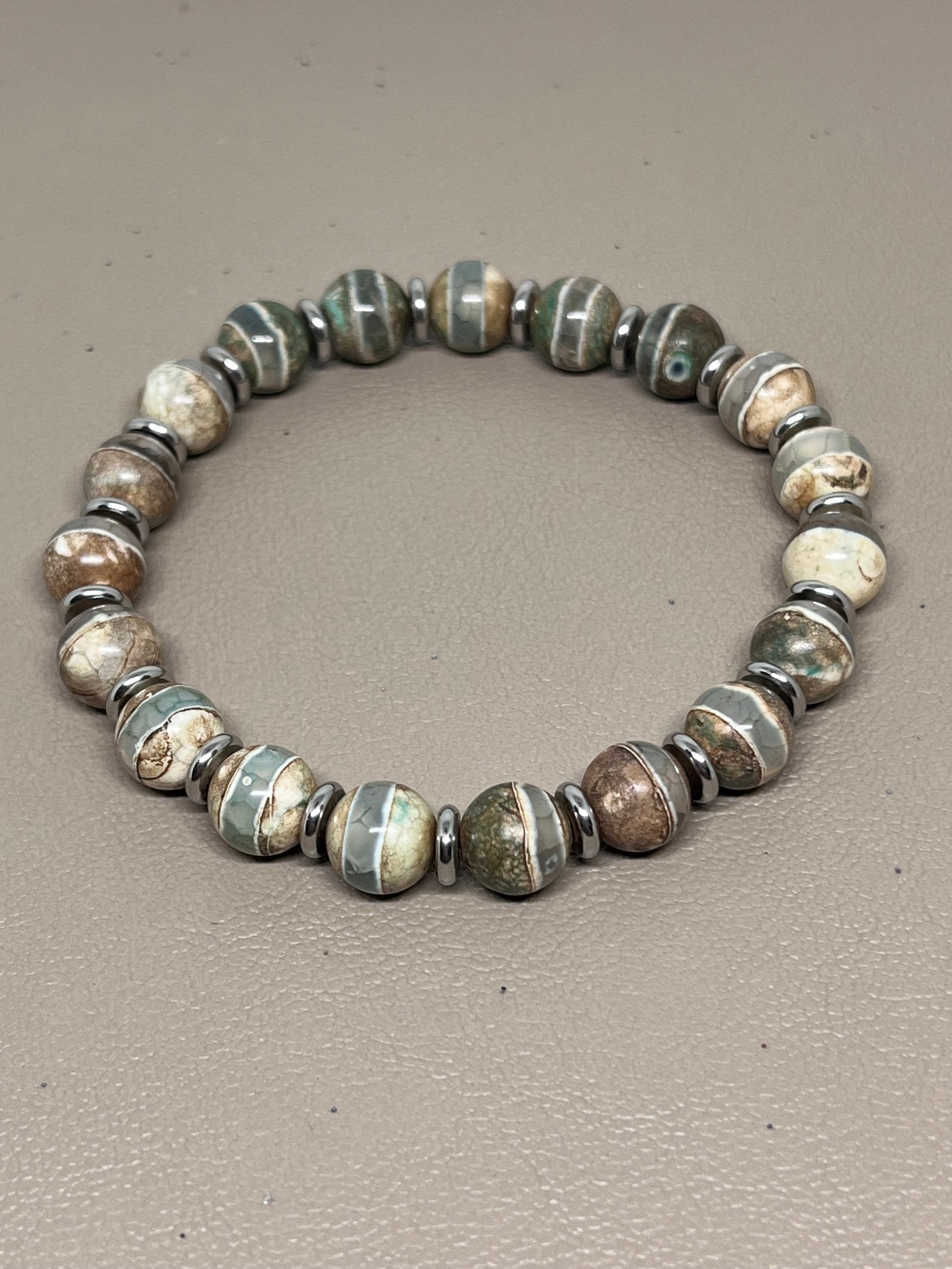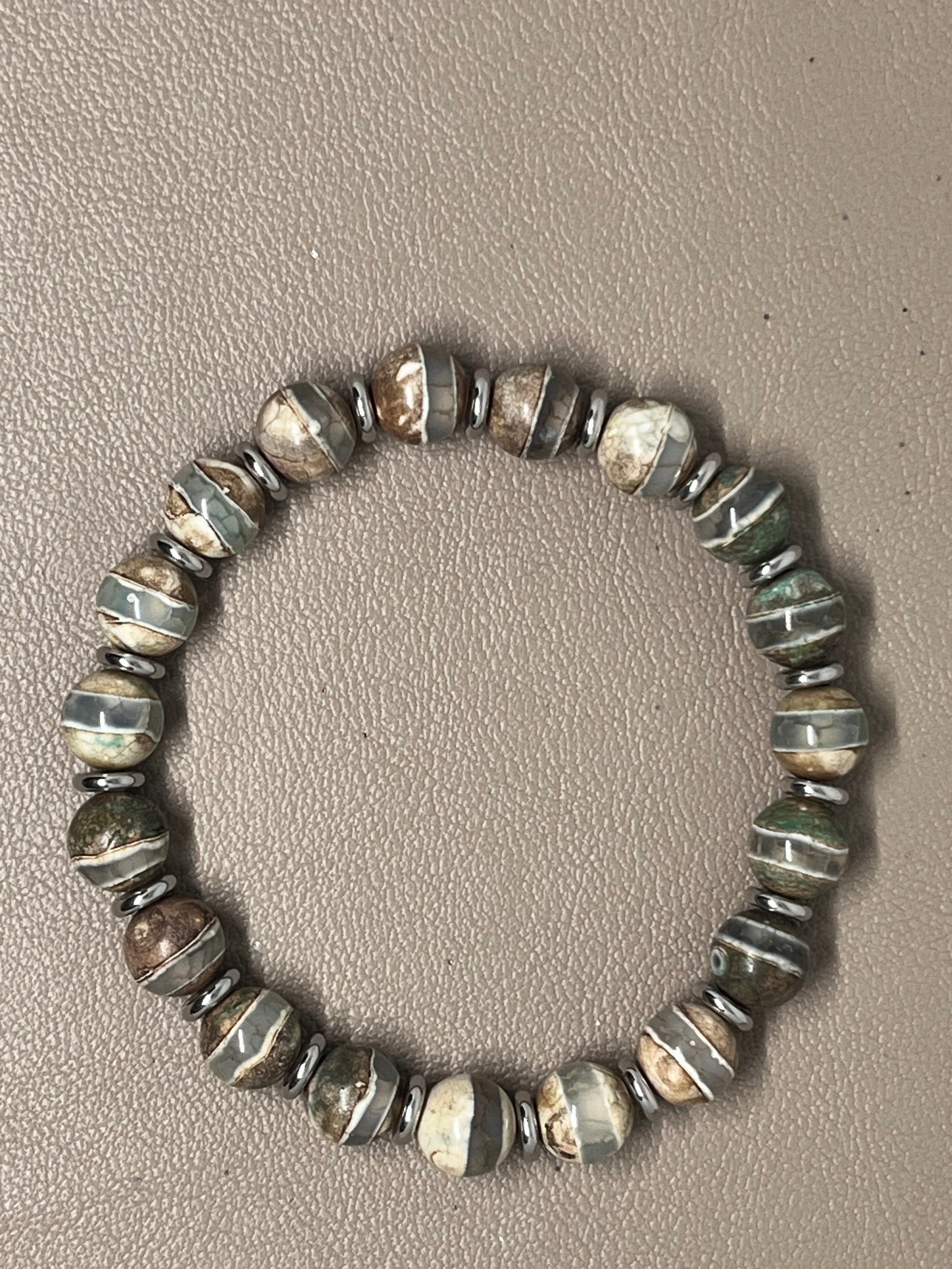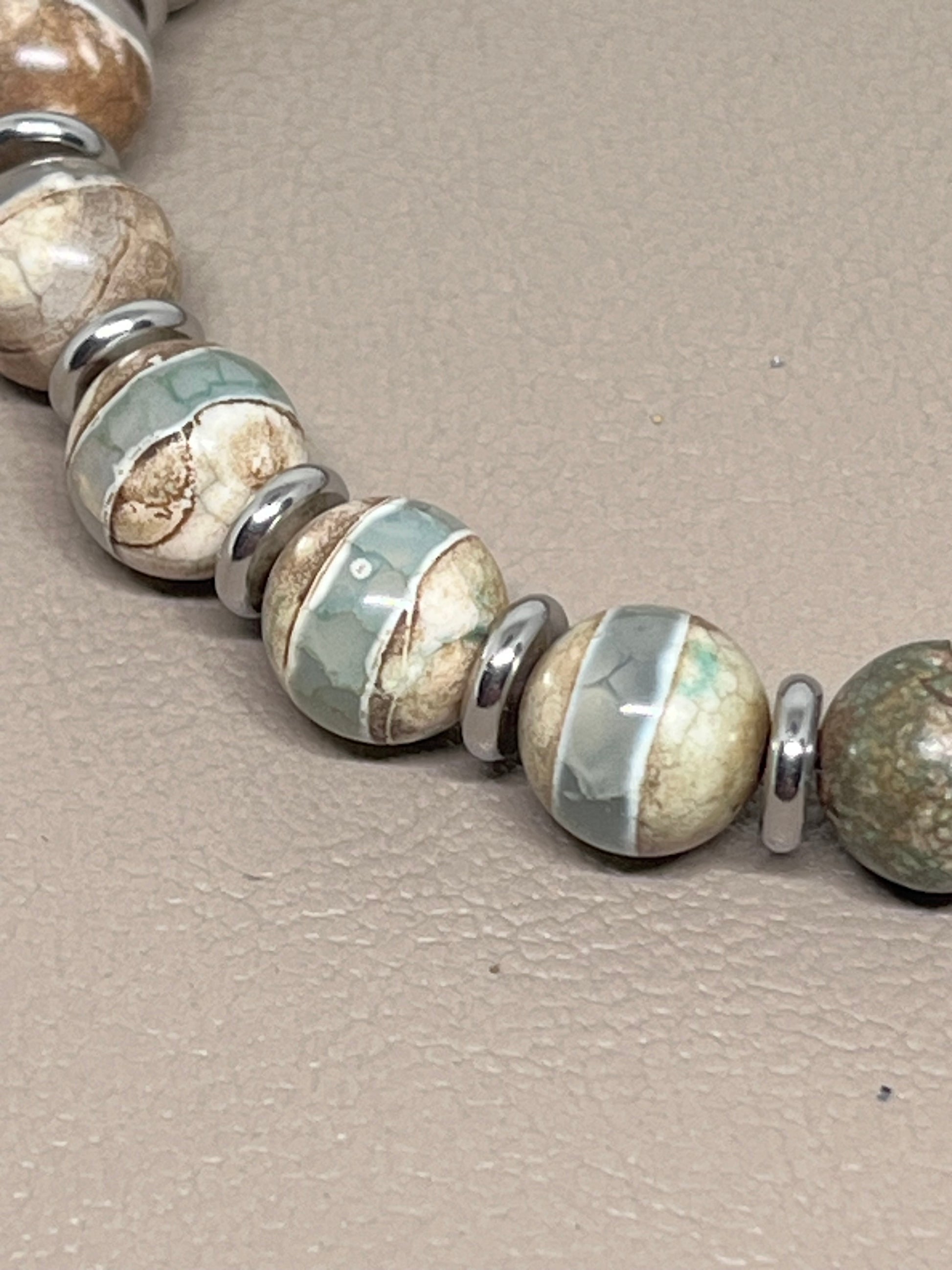 🎨 Farge / steintype: tibetansk DZI steinagatperler ca 8 mm og rustfritt stål.