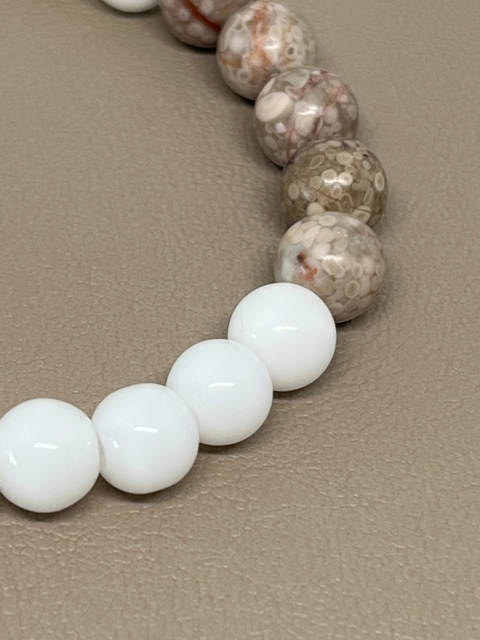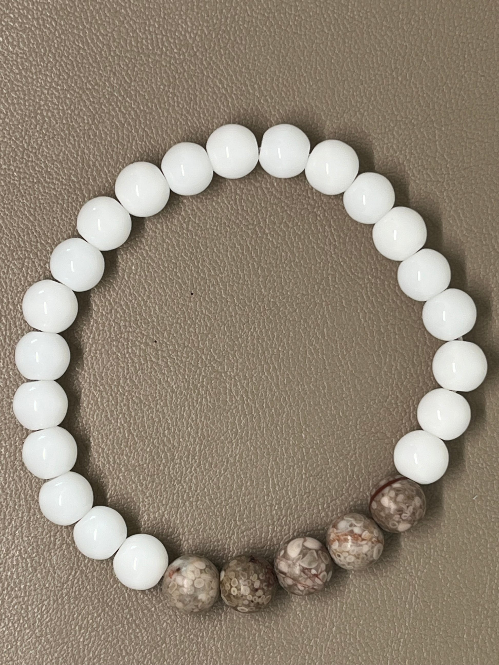 🎨 Farge / steintype: hvit agat og zeolittstein. 8 mm.