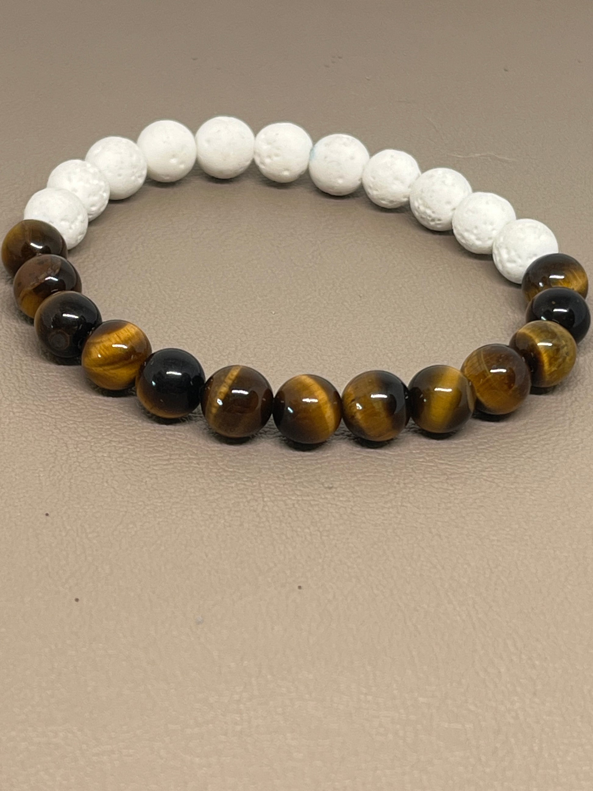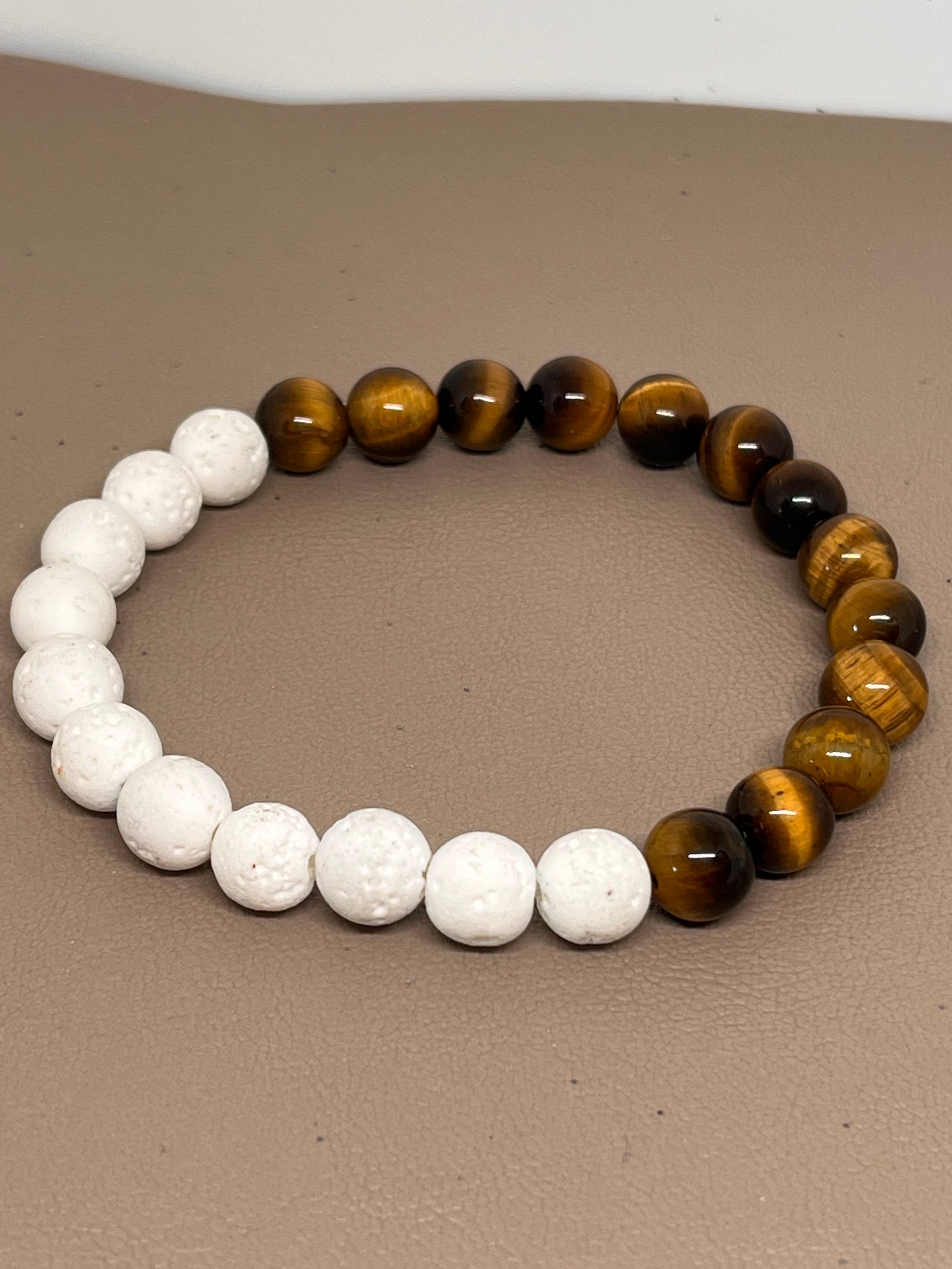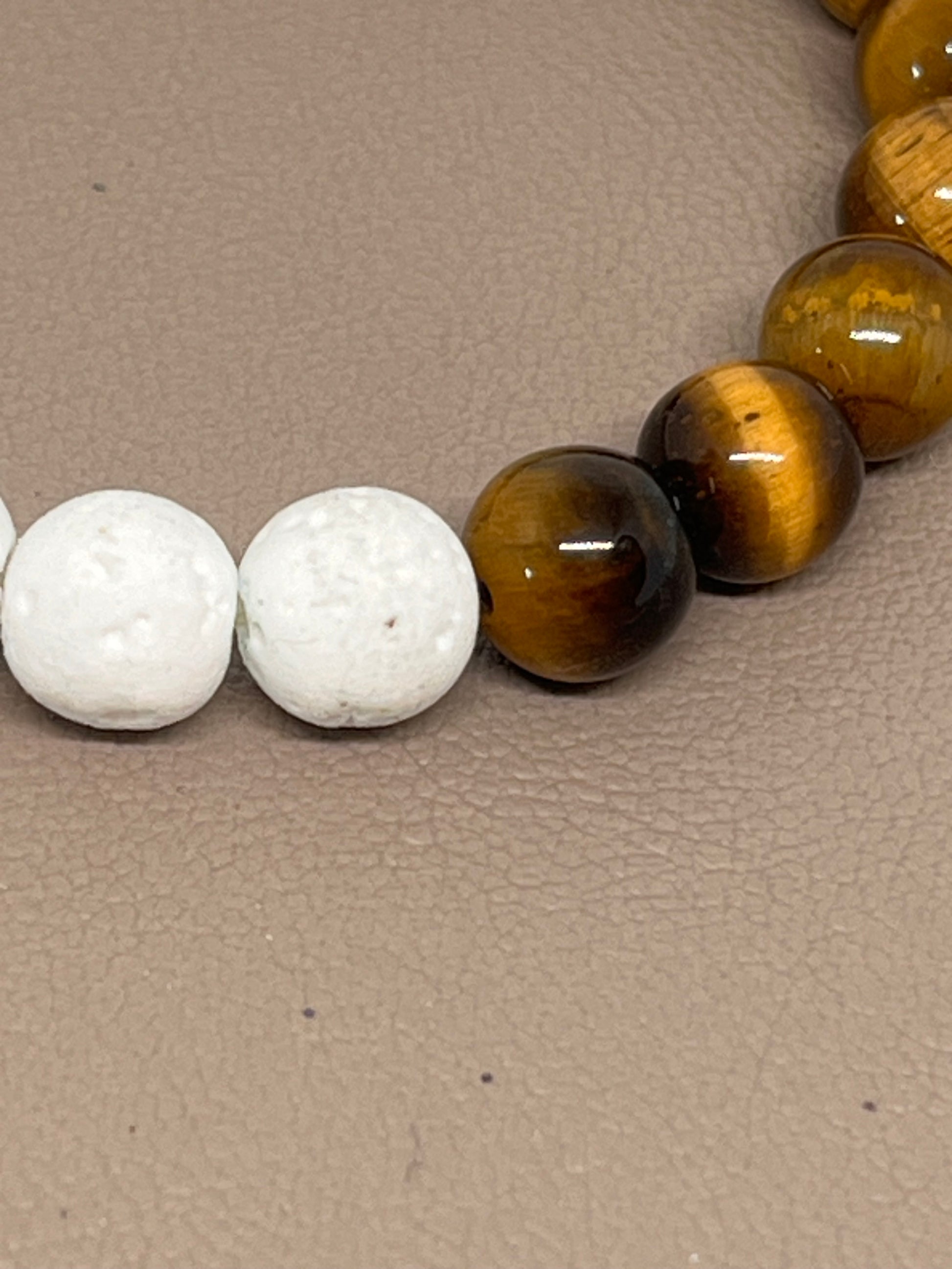🎨 Farge / steintype: Hvit lavastein og brune tigerøyne. 8mm.